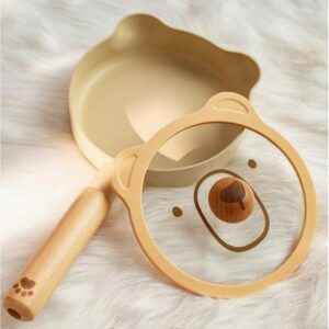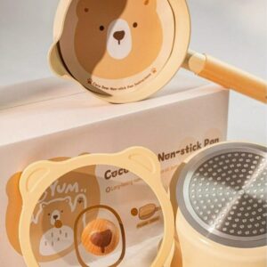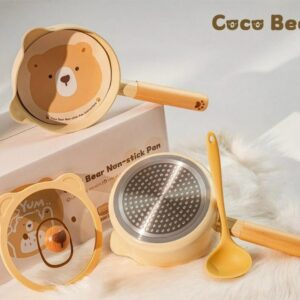 - Bộ nồi chảo ăn dặm cho bé hình gấu phong cách Hàn Quốc tặng kèm thìa silicon, Bộ nồi chảo Coco Bear cho nhà ít người.