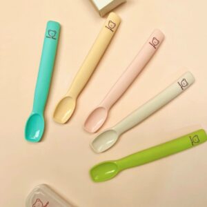 2. Thiết kế phù hợp với bé: Đầu thìa mềm mại, kích thước phù hợp với miệng nhỏ của bé. Cán thìa dài giúp cha mẹ dễ dàng cho bé ăn, cán thìa ngắn giúp bé tập tự cầm và tự ăn.